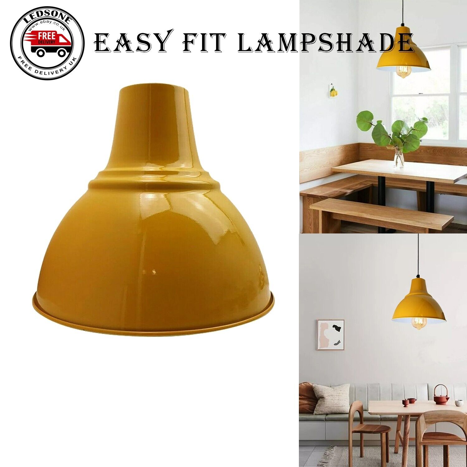 Vintage Retro Pendant Shade Metal Lampshade Kitchen Yellow Ceiling Light Shades