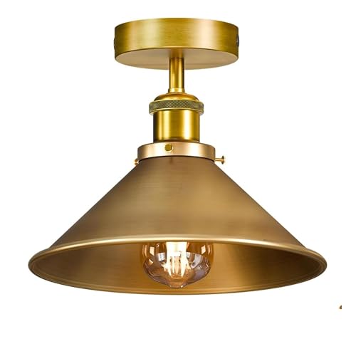 Vintage Ceiling Lighting with E27 Lamp Holder 22cm Yellow Brass Conical Lampshade Easy Fit Premium Quality Anti Rust Durable Metal Flush Ceiling Light for Living Room Kitchen Hallway With EPC A+ Bulb