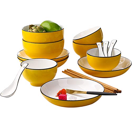H3TF5J Ceramic Dinner Plate Set, Non-toxic And High Temperature Resistant Tableware, Suitable For Microwave And Dishwasher, Black Frame Yellow Plate Steak Plate, Family Restaurant Banquet Supplies