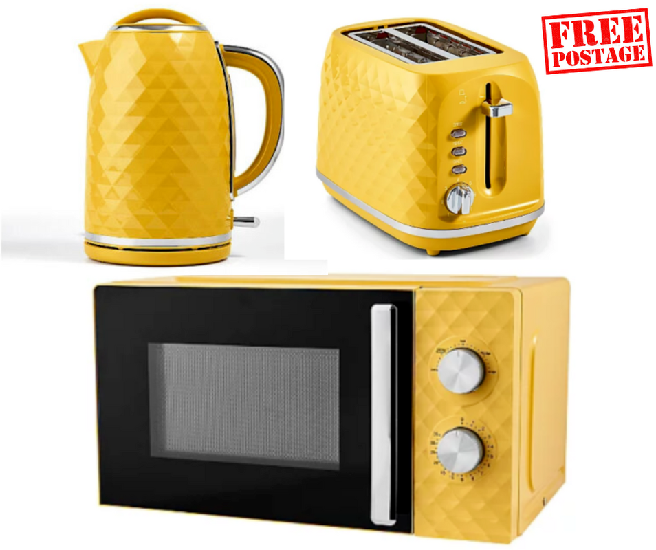 Matching Yellow Stylish Diamond Effect Kettle 2 Slot Toaster & 700W Microwave UK
