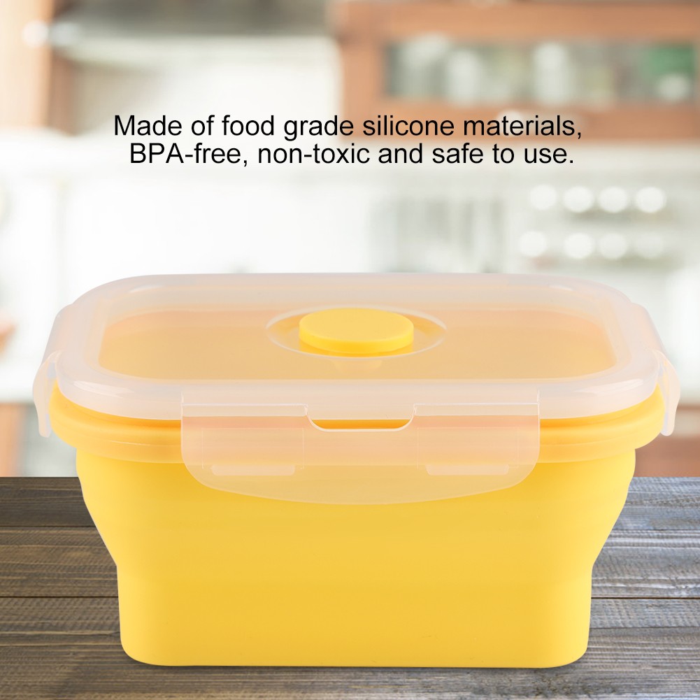 (Yellow)350ml Rectangle Silicone Box Collapsible Lunch Box Microwave F New