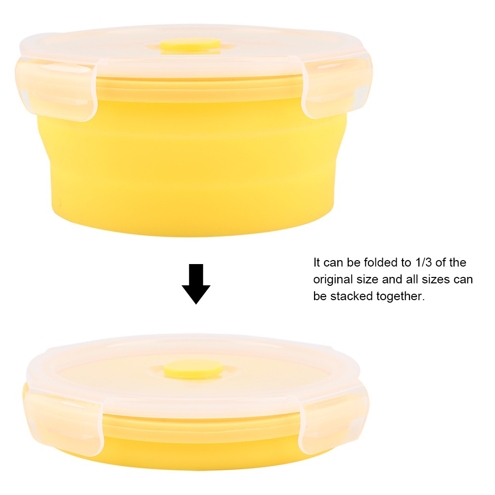 Yellow 500ml Round Silicone Box Collapsible Lunch Box Microwave Food
