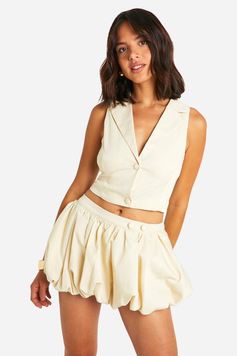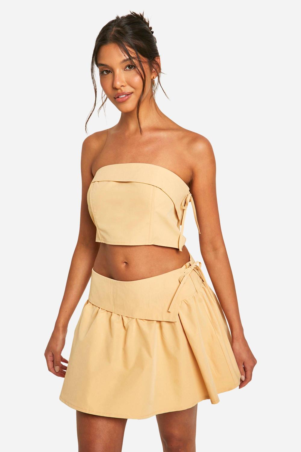 Butter Yellow Textured Tie Waist Detail Puffball Mini Skirt