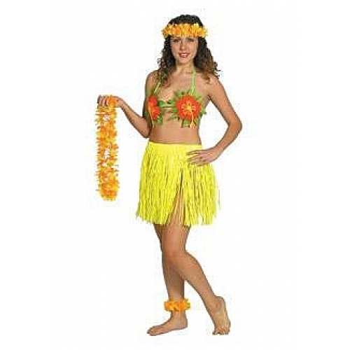 Yellow Mini Hula Skirt, Hawaii, Tahiti, Paradise, Fancy Dress Accessories H51912