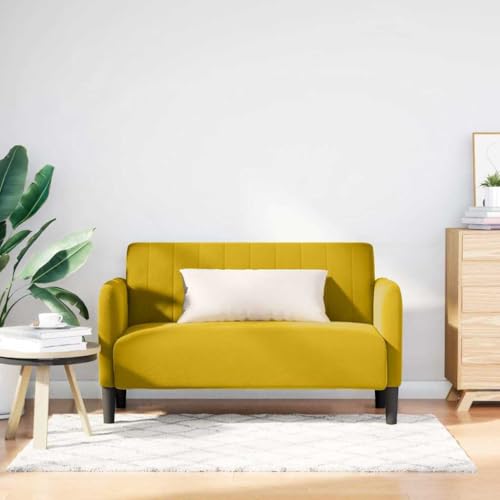 kithwjll Two Seater Sofa Yellow 109 cm, Velvet Fabric, Comfortable Padding, Sturdy Plywood Frame, Modern Design for Living Room, Easy to Assemble