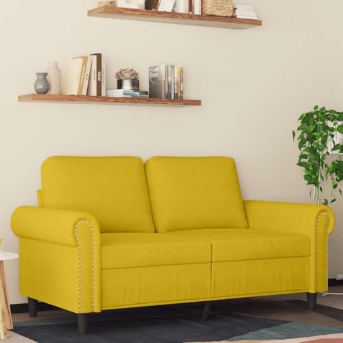 kithwjll 2 Seater Sofa Yellow 120cm Wide Velvet with Decorative Cushions Heavy Duty Metal Frame Comfortable Upholstered Furniture for Living Room Modern Design