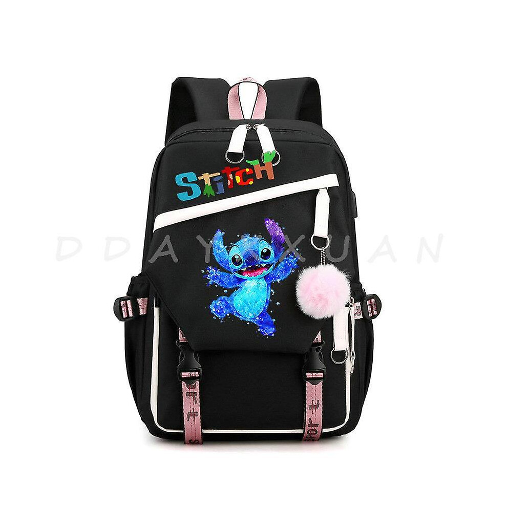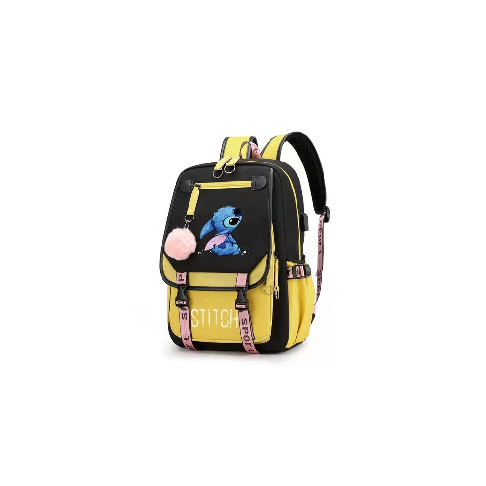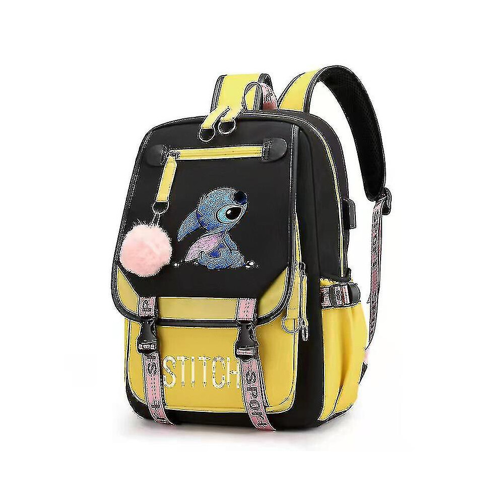 (Yellow) Stitch Students Backpack Boys Girls Outdoor Cartoon Daypack With Usb Charge Port