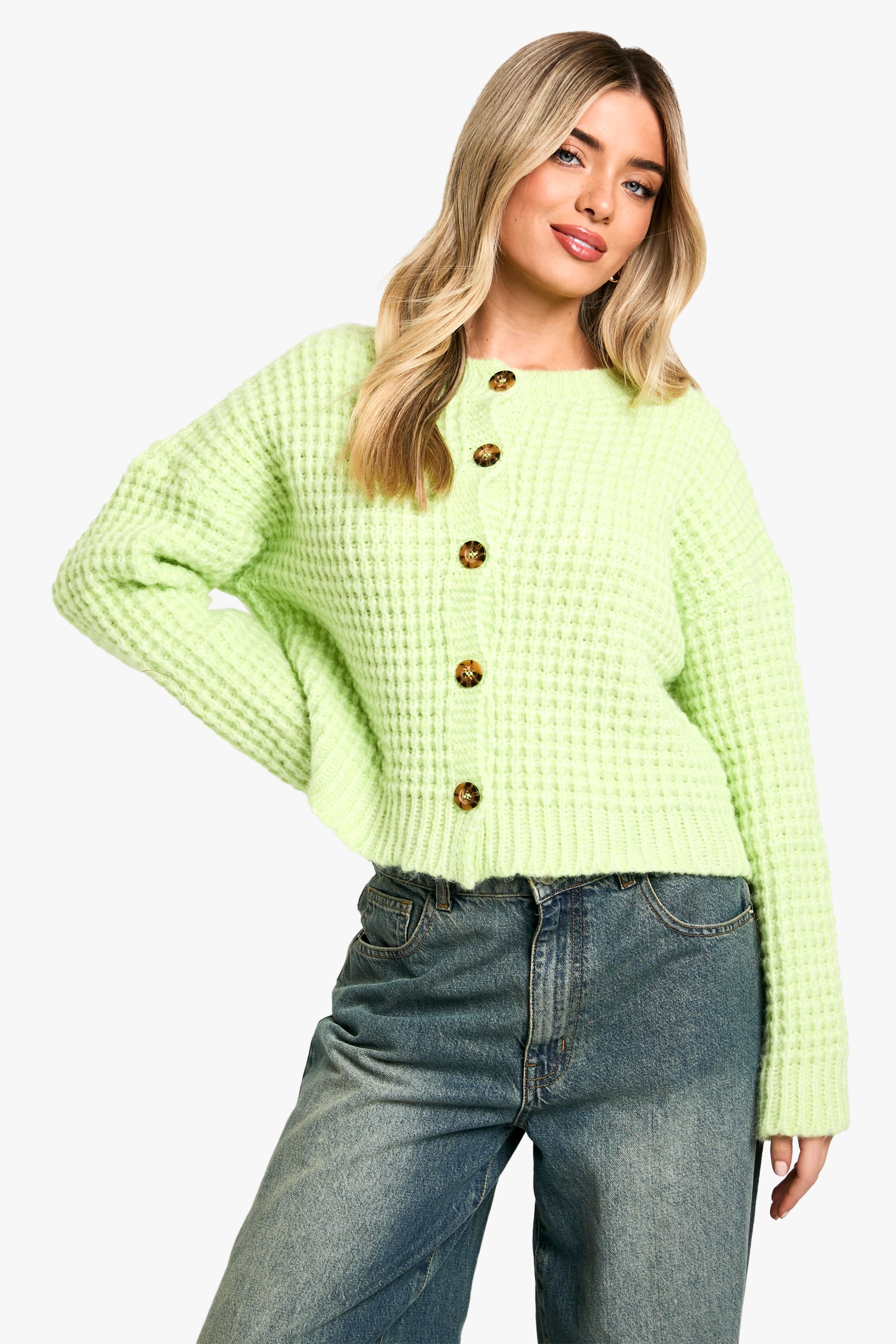 Boohoo Womens Premium Chunky Stitch Button Down Knitted Cardigan - Yellow - Size Small