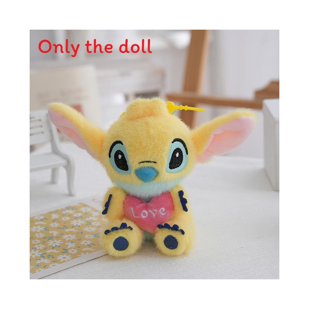(Yellow) Cute Stitch Hugging Heart With Letter Embroidered Cartoon Doll Plush Pendant