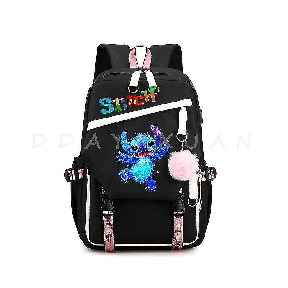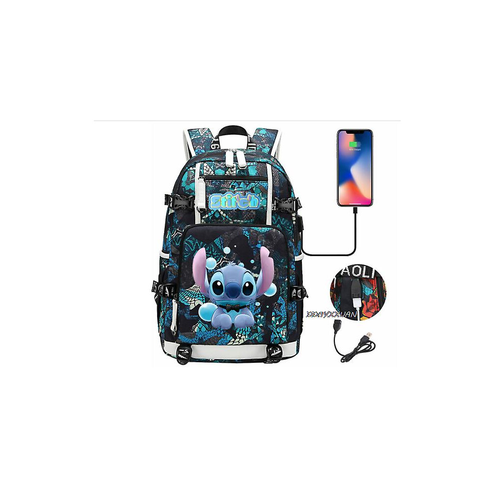 ( Yellow) Kids Anime Stitch Students Usb Backpack Boys Girls Travel Rucksack School Bag