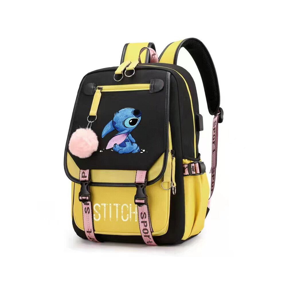 (Yellow) Stitch Students Backpack Boys Girls Outdoor Cartoon Daypack With USB Charge Port