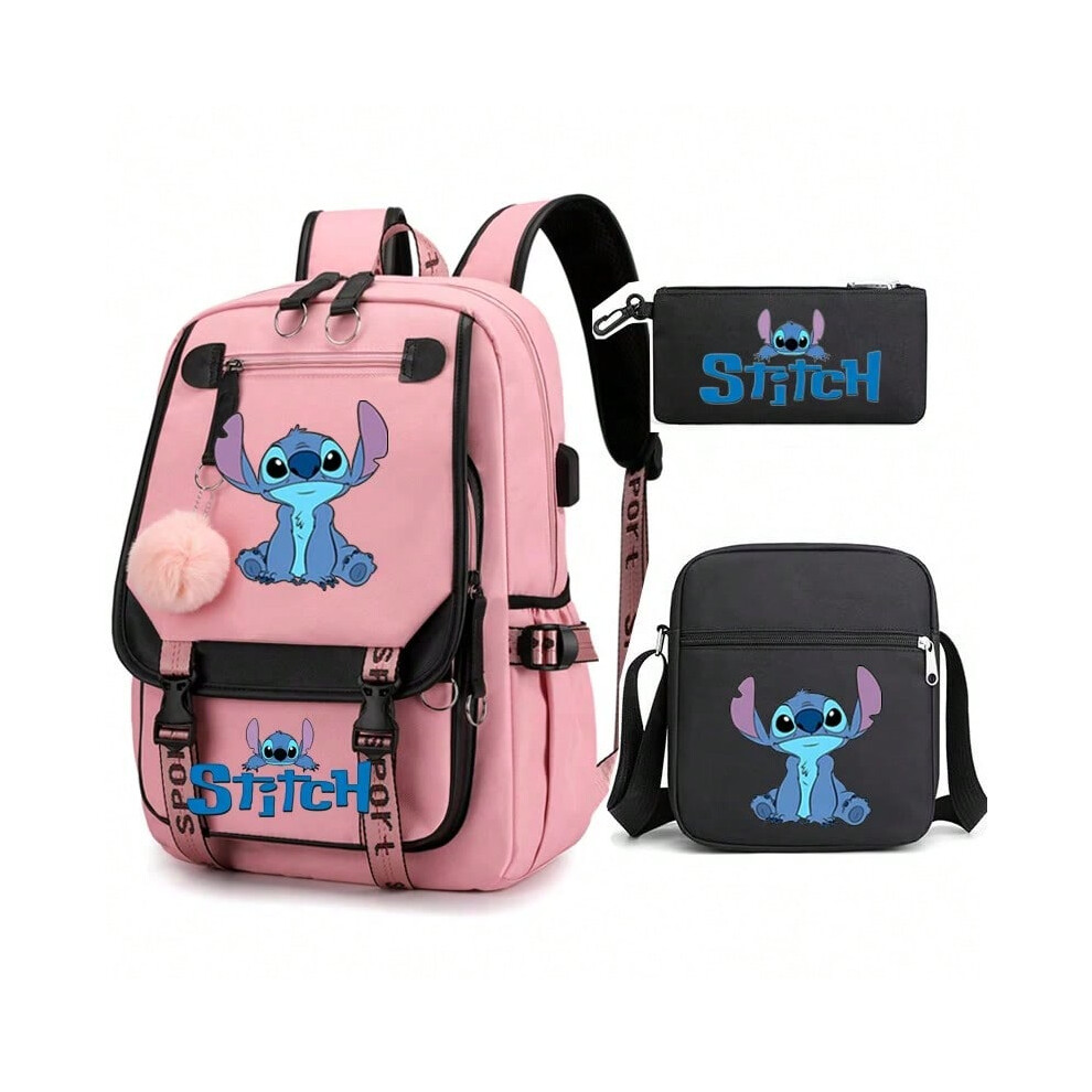(light yellow) Loli Stitch Backpacks USB 3PCS Large Shoulder Bag Travel Backpack Patchwork Laptop Student School Bags Bagpack Mochila