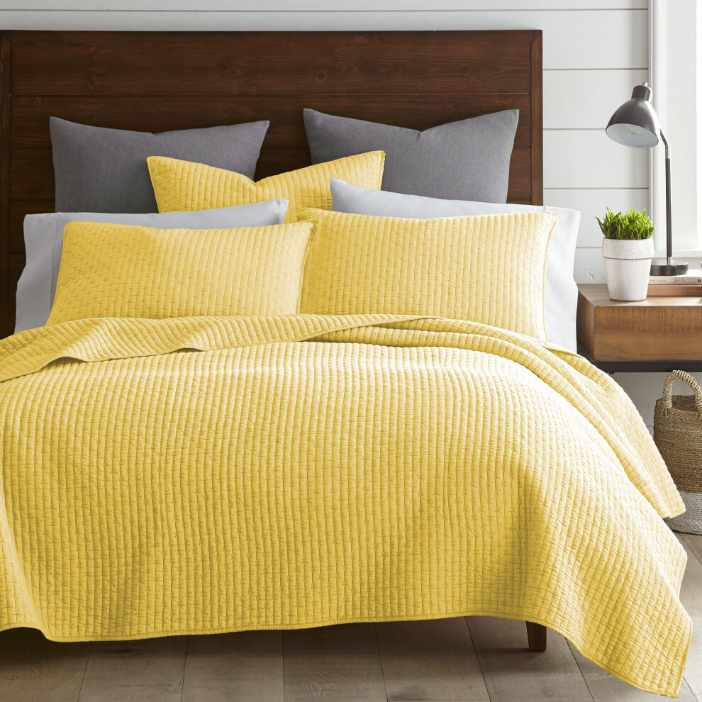 Levtex Home - Cross Stitch Yellow Bedspread Set - King Quilted Bedspread and Two King Shams - Cross Stitch Pattern - Bedspread (120x104in.) and Sham (