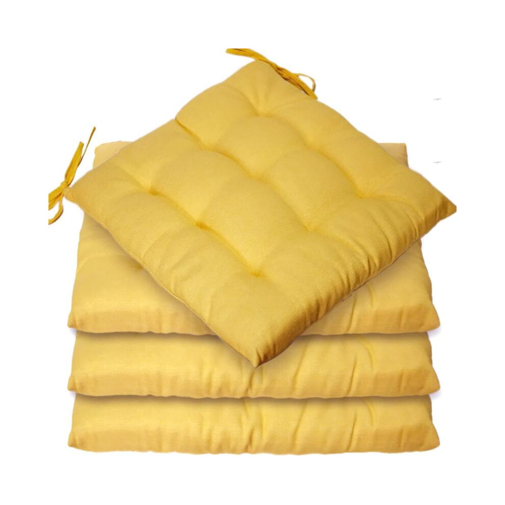 (Yellow, 4) 9-Stitch Seat Pads Comfortable for Dining, Garden, Kitchen Chairs - Pack of 2/4/6/8 Cushions with Tie-On, Indoor/Outdoor Use