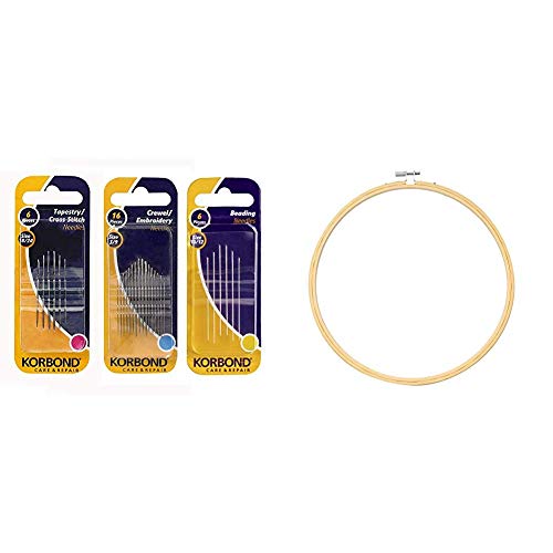 Korbond Triple Set Tapestry/Cross Stitch, 6 Beading 16 Crewel/Embroidery 28 Needles in Total for Hand Sewing, 4.8cm & 8 Inch Embroidery Hoop/Ring-8 Inch/20cm – 100% Bamboo, Yellow