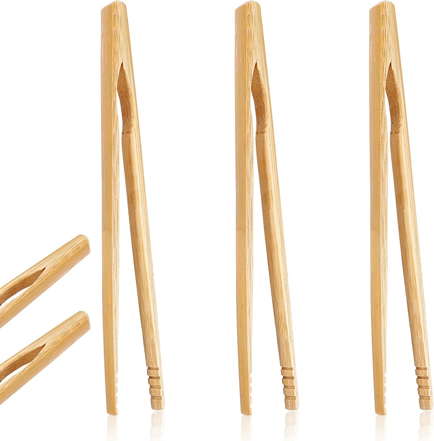 3 PCS Bamboo Toast Tongs, 7 inch Bamboo Tongs for Cooking, Anti-Slip Toaster To