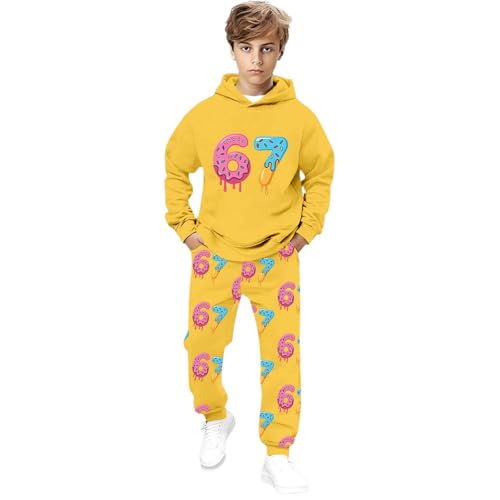 Girls' Tracksuits - Boys Graphic Print Hoodie And Jogger Casual Play Outfit For Kids Soft Two Piece Tracksuit (Yellow 13-14 Years)