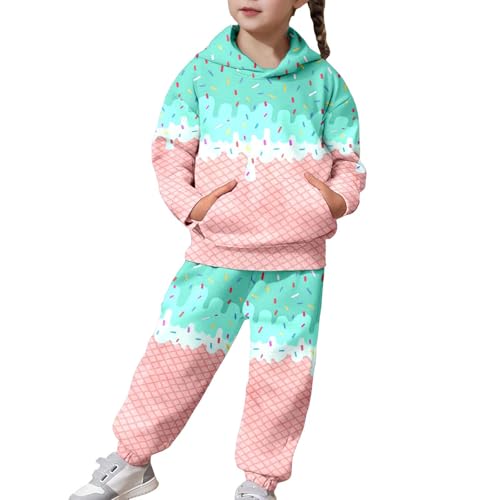 Kids Tracksuit - Girls' Printed Hoodie And Jogger Cute Casual Two Piece Outfit For Toddlers And Kids Soft Fleece Tracksuit (Yellow 9-10 Years)