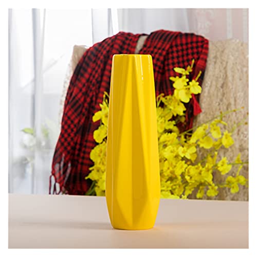 TITA-DONG Modern Boho Home Decor Style Flower Vase, Yellow Ceramic Vase for Shelves, Fireplaces, Bookshelves, Living Room Tables, and Entrances