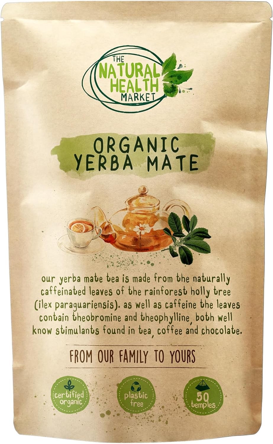 Organic Yerba Mate Tea Bags by The Natural Health Market | Plastic Free Product | A Powerful Stimulant Containing Natural Vitamins & Minerals (50