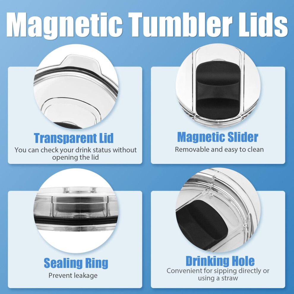 1 Pack 20 oz Magnetic Tumbler Lids, Spill-Proof Slider Covers for 20 oz/16 oz/10 oz/24 oz Cups, Clear â Compatible with Yeti & RTIC