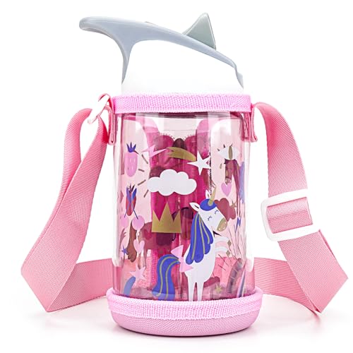 Linkidea Clear Water Bottle Carrier with Strap Compatible with Contigo 14oz, Zak Designs, YETI Rambler Jr. 12oz Kids Bottles, Transparent Waterbottle Sling Bag Holder, Shoulder Strap, Pink