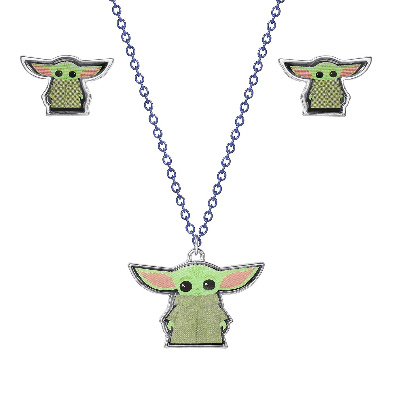 Disney Star Wars Baby Yoda Mandalorian Pendant and Studs Set