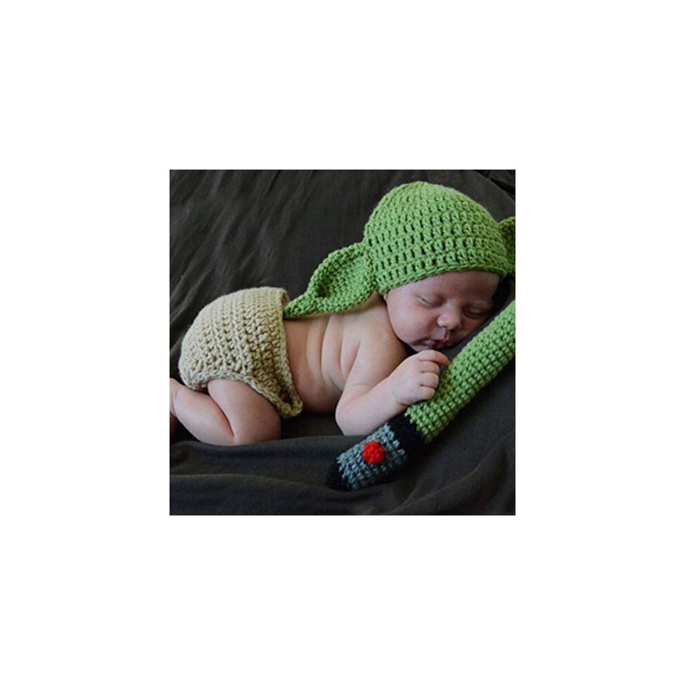 MOVKZACV Baby Yoda Costume, Newborn Photography Props Crochet Knitted Outfits Set Yoda Hat And Diaper Cover, Birthday Shower Gift Cartoon Clothing