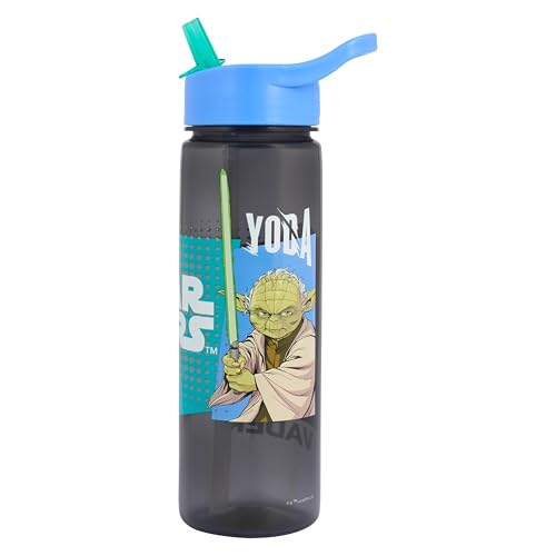 Star Wars 600ml Water Bottle with Straw and carry handle by Polar Gear featuring Yoda and Darth Vader for children or adults at school, the gym, sports, work made of polypropylene