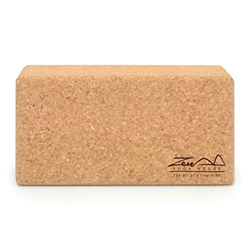 Cork Yoga Block Standard – By ZenYogaWedge - Premium 100% Natural Single Brick For Beginners and Professionals Yoga Pilates Classes Home Exercise Fitness Non-Slip Grip - Eco-Friendly