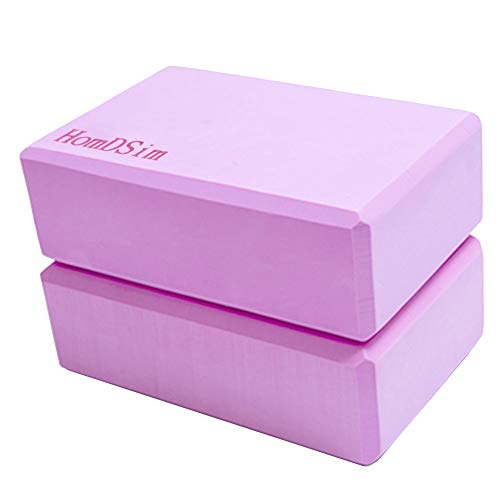 HomDSim Set of 2 Yoga Blocks EVA Foam Exercise Bricks Provides Stability Balance and Support Improve Strength - 9 x 6x 3 inches (Purple)