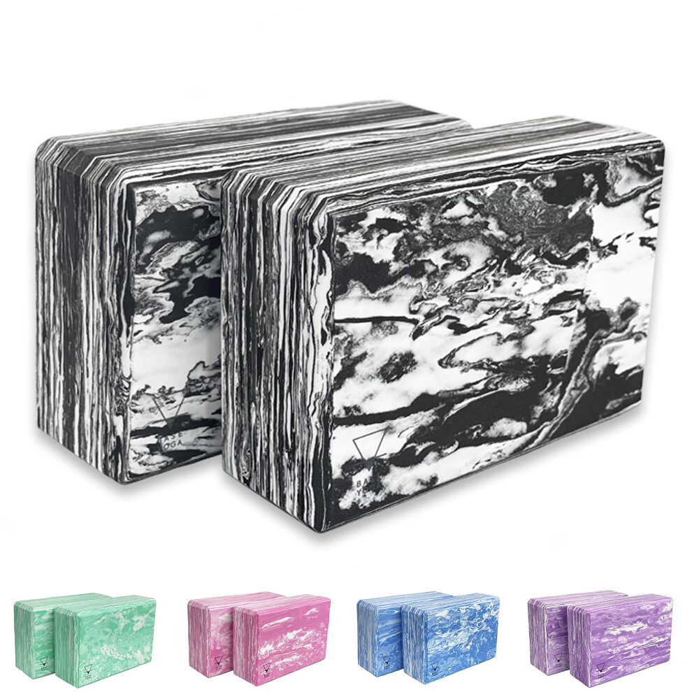 Base yoga Yoga Blocks - 1 or 2 pc set - Unique Strong/Firm/Lightweight EVA foam support block/brick (Black x 2)