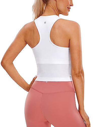 CRZ YOGA Women's Longline Ribbed Crop Tank Top Padded Wireless Racer Back Sports Bra Yoga Vest Tops with Built in Bra White 10