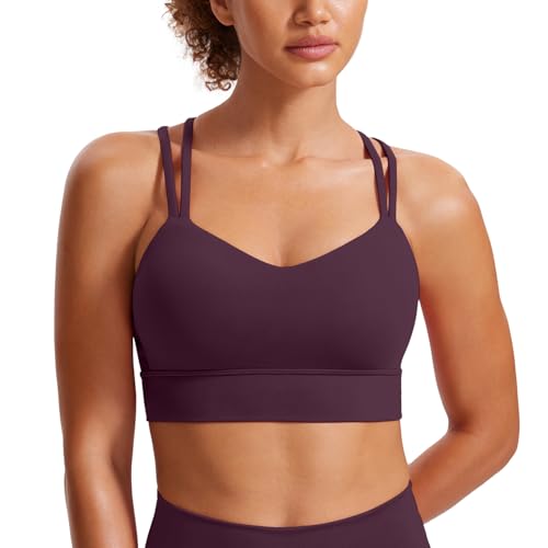 CRZ YOGA Butterluxe Women's Strappy Sports Bra Molded Cup Criss Cross Yoga Bra Padded Longline Workout Crop Top Deep Purple M