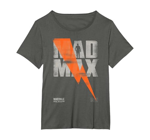 WB 100: Mad Max The Road Warrior Lightning Bolt T-Shirt, Women's Plus, Asphalt Grey, 1X