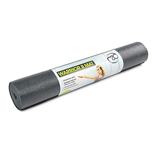 Yoga-Mad Warrior II Yoga Mat | 183cm x 61cm x 4mm | Non Slip Lightweight Exercise Mat | Perfect for Pilates, Yoga, Stretching, Home Workouts and General Fitness (Graphite) (Black)