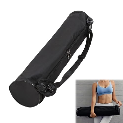 TJC Portable Yoga Mat Bag with Storage Pockets and Adjustable Shoulder Strap Yoga Mat Carry Luggage Bag Made of 100% Polyester Durable Lightweight Side Washable Travel Size 70x20x1 Cm - Black