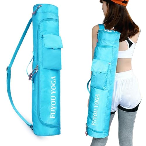 TJC Portable Yoga Mat Bag with Storage Pockets and Adjustable Shoulder Strap Yoga Mat Carry Luggage Bag Made of 100% Polyester Durable Lightweight Side Washable Travel Size 70x20x1 Cm - Light Blue