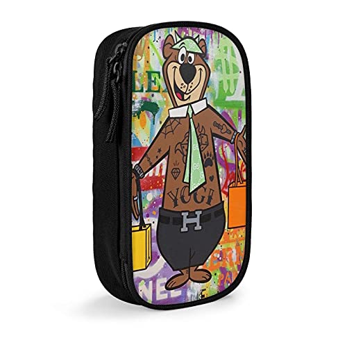YINGD Yogi Bear Pencil Case Anime Multifunction Large Capacity Pouch Stationery Bag Zipper Storage Bag Pen Box for Boys Girls