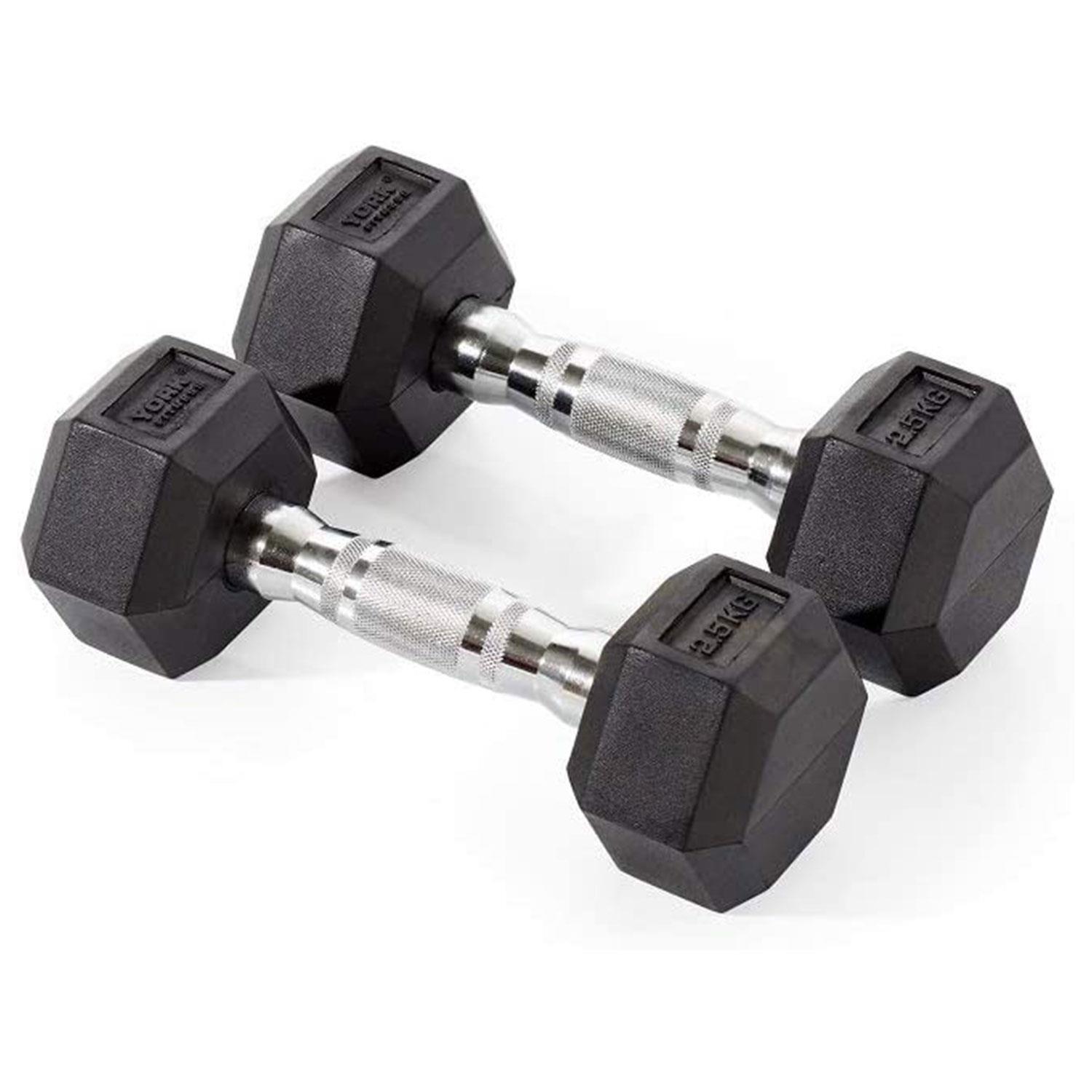 Dumbbell Exercise Equipment, York Fitness Barbell Rubber Hex Set, 10 Kg
