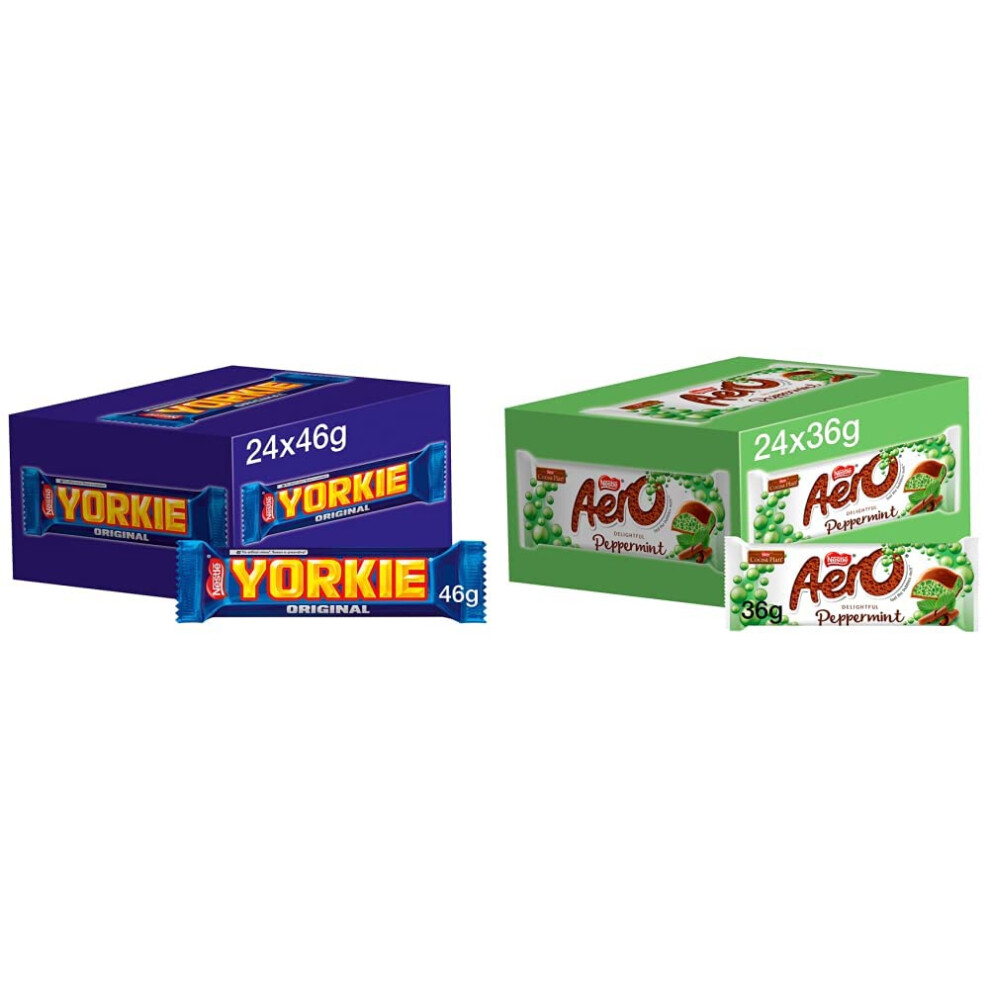 Yorkie Milk Chocolate Bars, 24 x 46 g & Aero Bubbly Peppermint Mint Chocolate Bars, 24 x 36 g