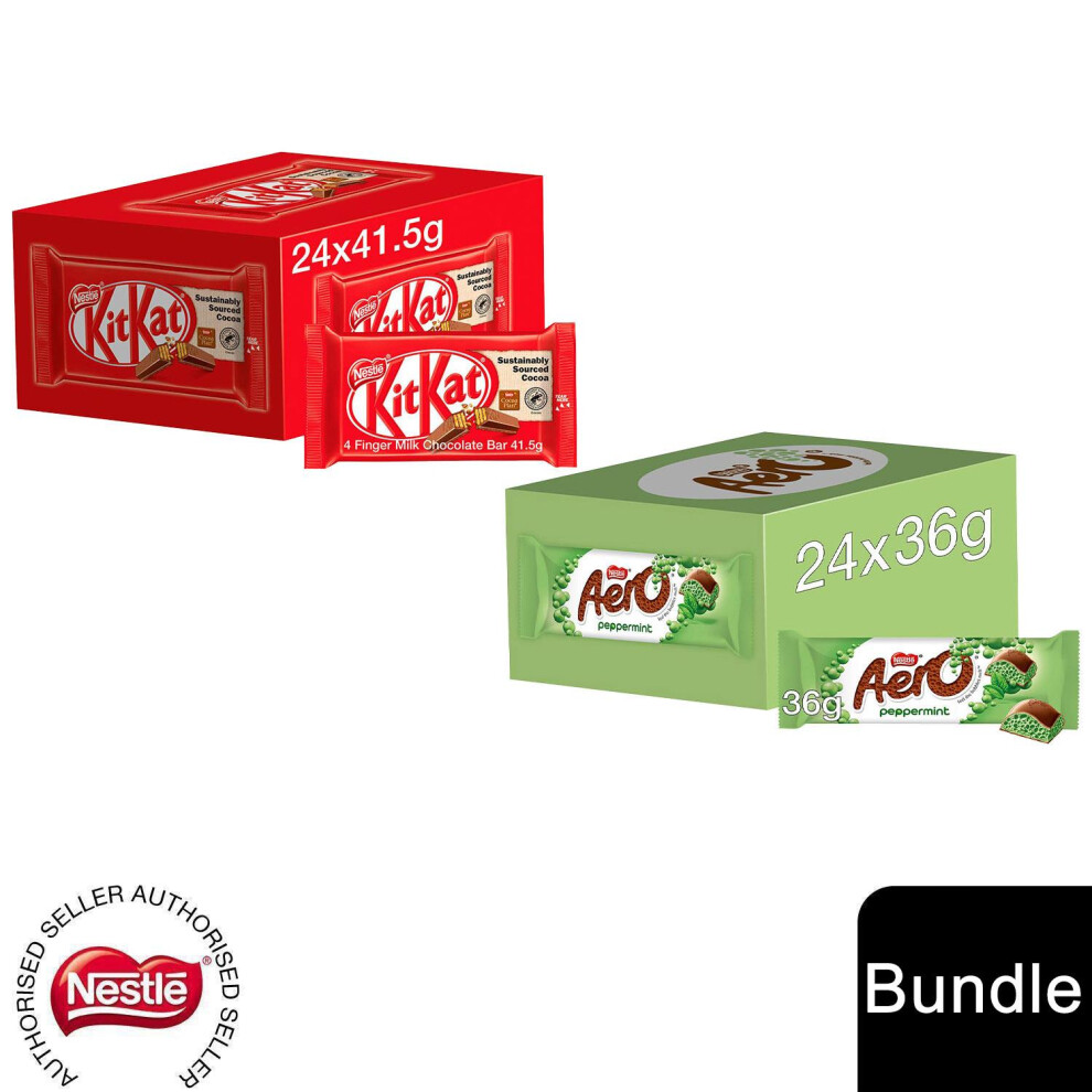 (24x KitKat Chocolate Bar + 24x Aero Peppermint (48 Bars)) Nestlé Chocolate Bar (48 - 144 Bars) Yorkie, Aero, Milkybar Pick your Favourite