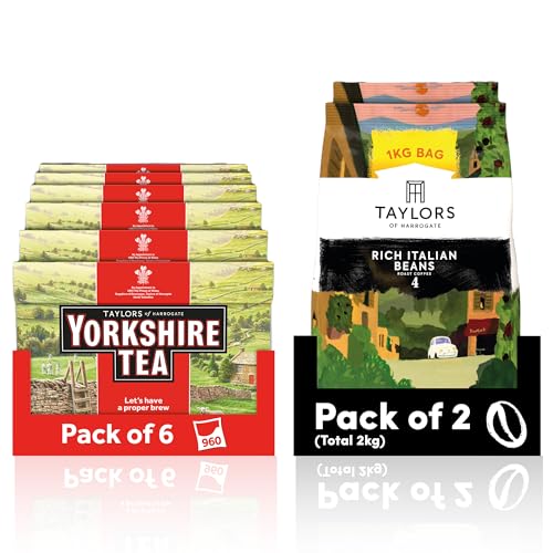 Yorkshire Tea Bundle (Total of 960 Tea Bags) + Taylors of Harrogate Rich Italian Coffee Beans (Total of 2kg) – Perfect for the Office
