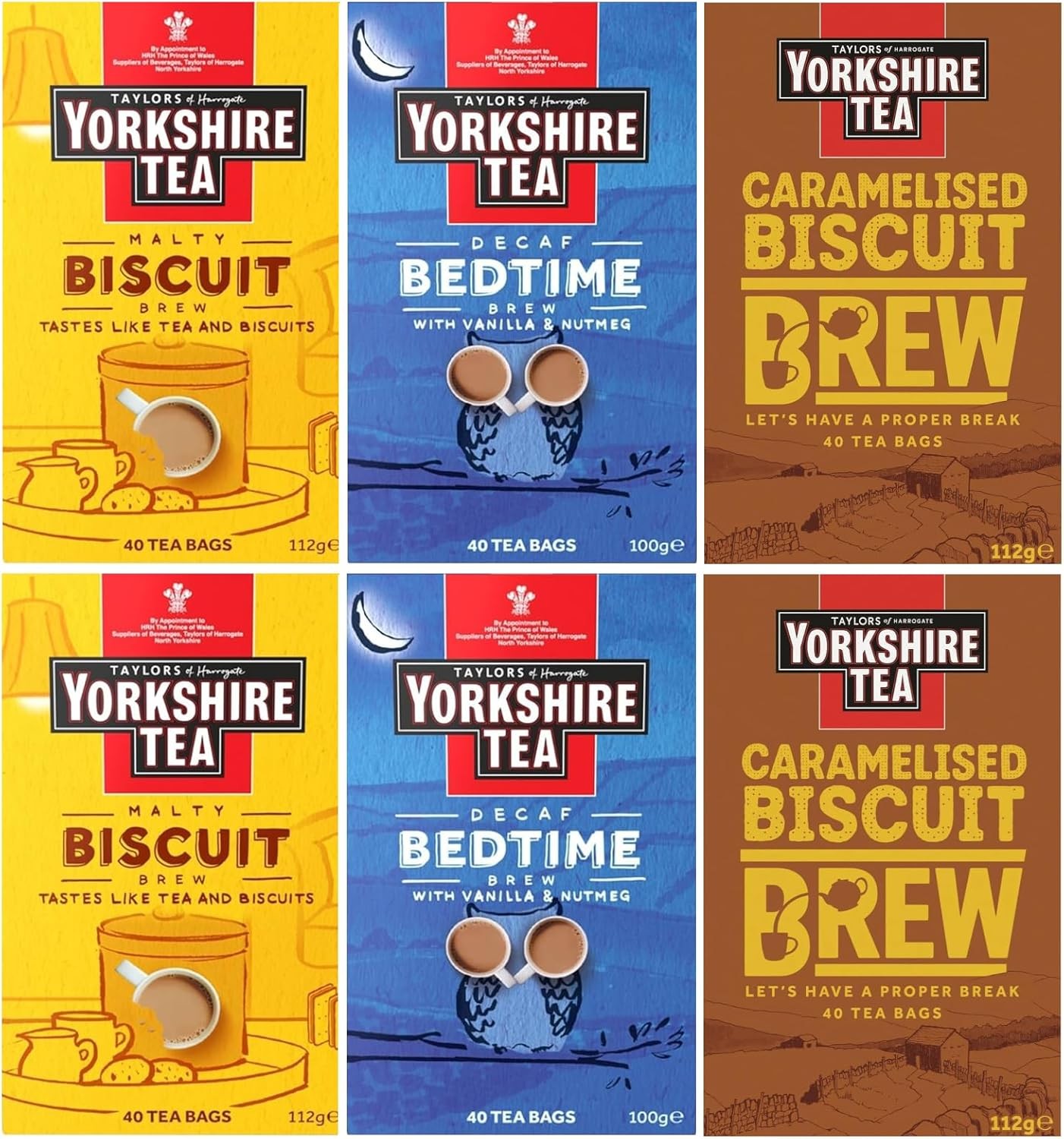 Yorkshire Tea Variety Pack x40 Tea Bags - Malty Biscuit, Decaf Bedtime, Caramel