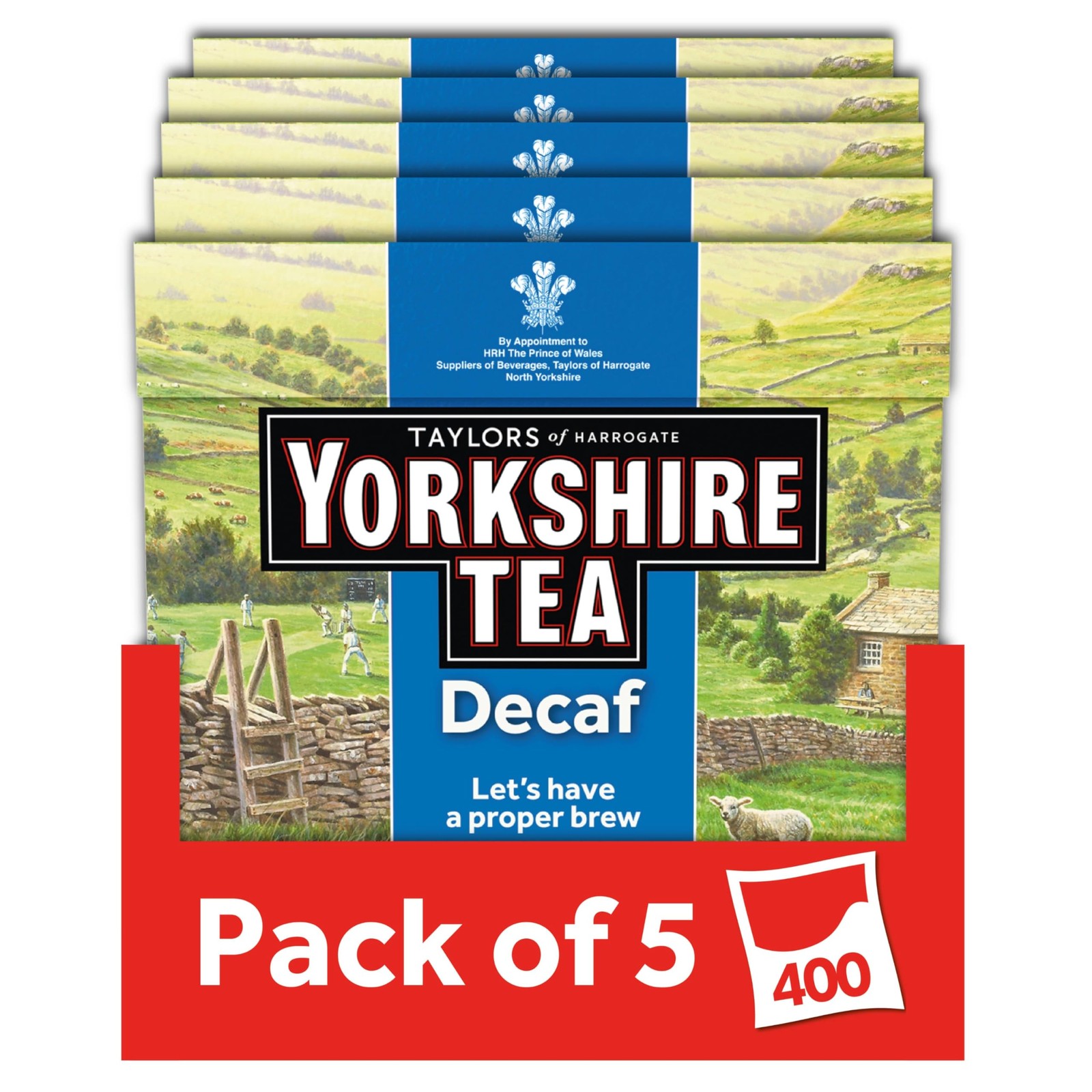 Yorkshire Tea Decaffeinated Tea Bags 80 Pack of 5, total of 400 bags
