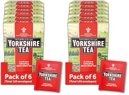 Yorkshire Tea, Individually Wrapped & Tagged Tea Bags, 6 Boxes of 20 Tea Bags (