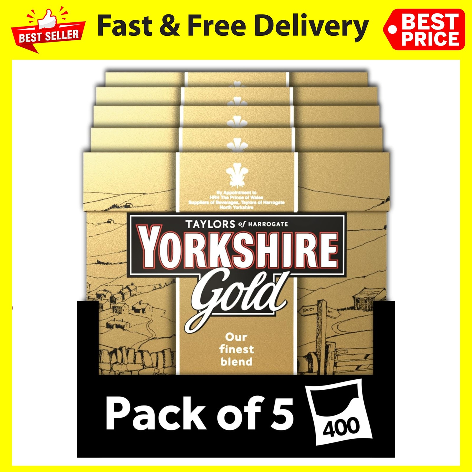 Yorkshire Tea Gold Tea, 80 Bags (Pack of 5, total 400 Teabags)