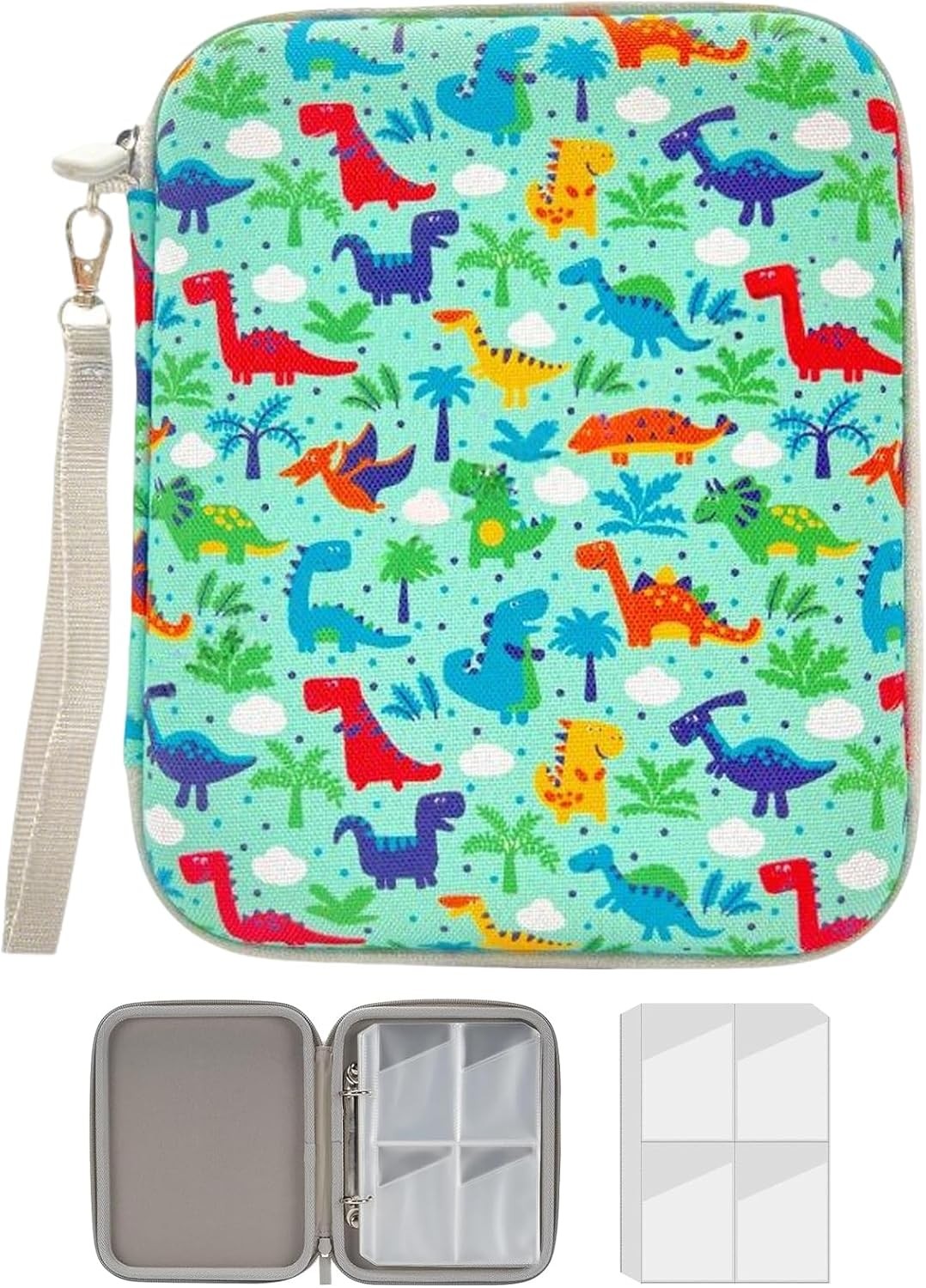 RARITYLL Cards Holder, 80 Pocket Zipper Case for Yoto Player, Mini Audiobook Cards, Portable Card Binder Organizer for Kids Travel Storage (Dino Design)