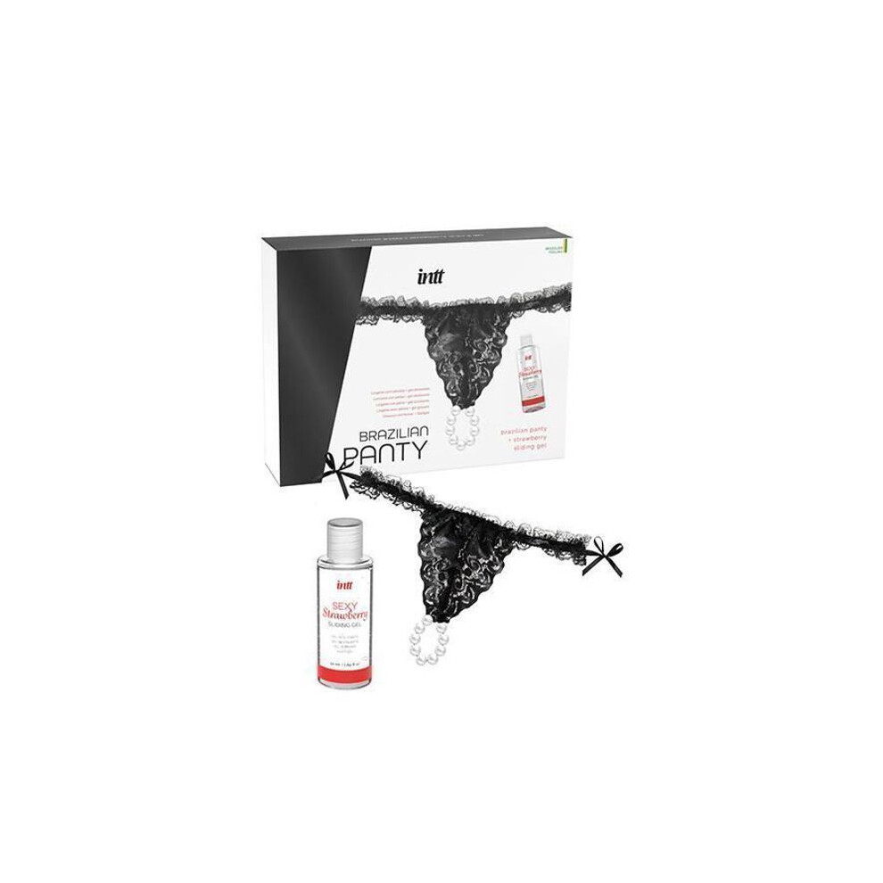 INTT RELEASES - BRAZILIAN BLACK PANTY WITH PEARLS AND LUBRICANT GEL 50 ML