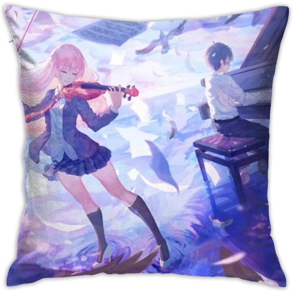 Your Lie in April Anime Luxury Breathable Cushion Cover, 18x18 Inch Home Living Room Sofa Car Seat Decoration Pillowcase
